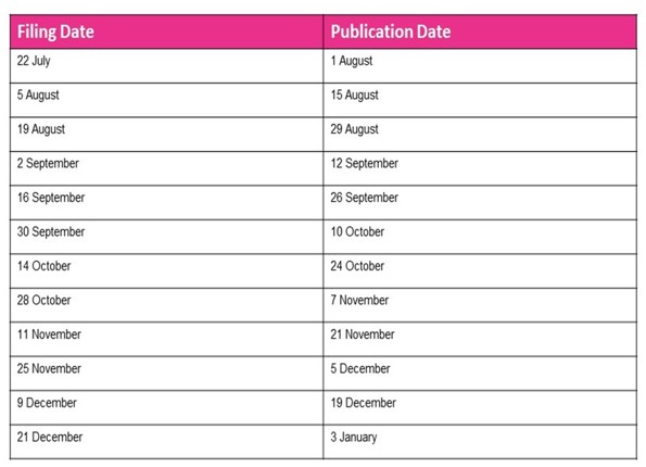 The key remaining dates for this year whereby notices can be filed for publication are as follows:
