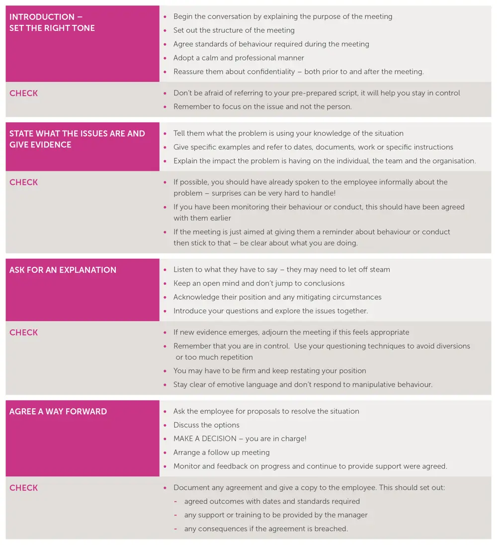 Nobody likes to have the hard conversations. Explaining to someone that they are not meeting standards, or something as simple as they need to wear appropriate attire to work can be tough. Here is a quick guide base don ACAS suggestions to get you through the rough bits.