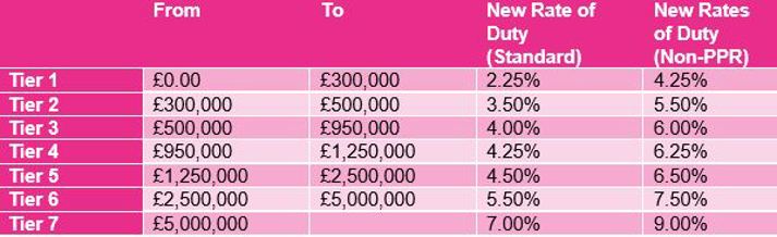Additionally, a new threshold of document duty has been introduced at 7% for transactions over £5,000,000.00.